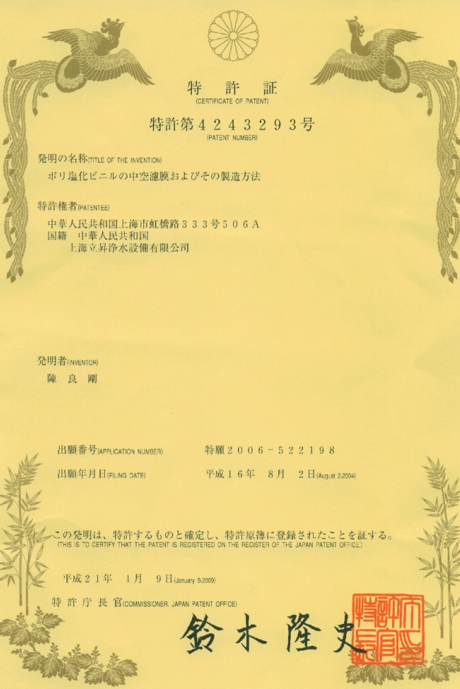 在“十五”科技攻关计划中,立昇企业成功研制“PVC合金毛细管式超滤膜”,攻克普通PVC材料产业化生产优质超滤膜的世界难题,降低了超滤膜的生产成本和运行能耗,提高了超滤膜的过滤性能和使用寿命,有力地推动了该技术在传统水处理行业的大规模应用,达到世界领先水平。
